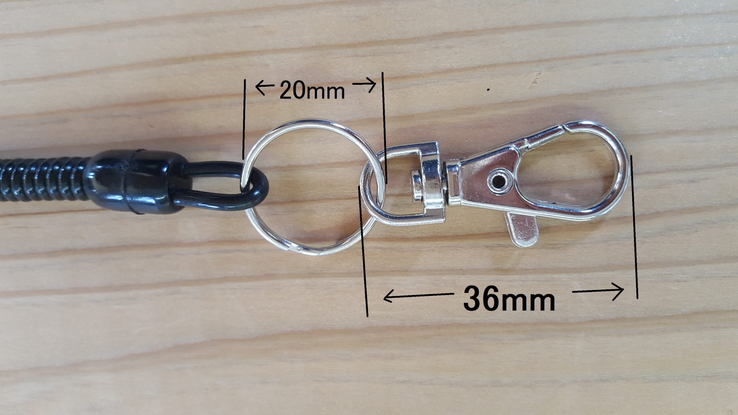 ■スリムホルダー(黒)330mm 片側フック (片側フック+両側2重リング)   ■カードリング25㎜ 100個入   ■ナスカン36mm 100個入